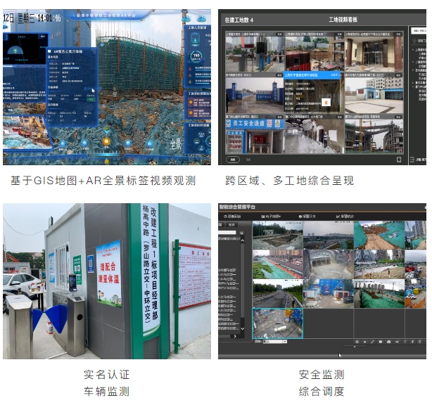 強大的管理功能:支持人員進出口通道管理,通(tōng)過PAD人臉識(shí)別實現現場封閉式人員(yuán)管理;支持車輛出入過(guò)磅通道監測及車輛(liàng)衝洗時長,衝洗是否達標(biāo)檢測;支持溫(wēn)濕度、風力、PM2.5、噪音監測;揚(yáng)塵、噴淋聯動等環境監測管理及遠程控製;支持安全帽、塔吊、物料、危(wēi)險區域入侵、吸(xī)煙監測管理。