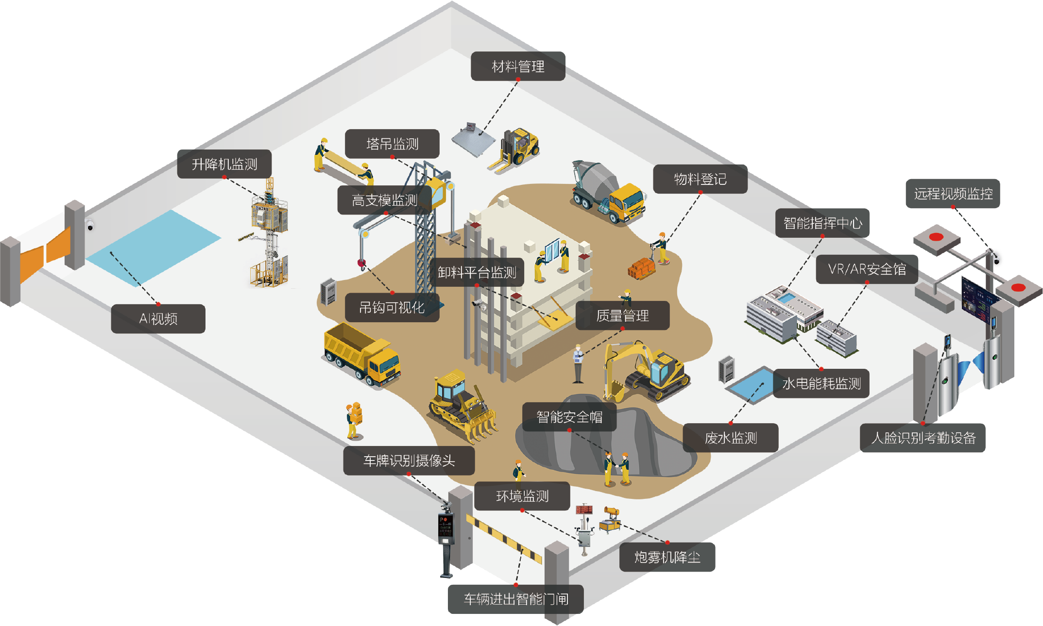 數據(jù)化實時監管:全麵監管施工(gōng)進(jìn)度、人員考勤、現(xiàn)場環境、塔吊運(yùn)行和現場作(zuò)業場(chǎng)景;