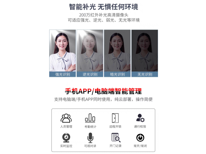 集光AIoT智能(néng)門禁管理係統具備技術、生(shēng)態、服務等(děng)差異化優勢:技術方麵,實現百萬分之一誤識率,複雜光照、佩戴口罩場景下識別精度超99.98%;生態(tài)融合方麵,係統與華為鴻蒙、阿(ā)裏雲IoT、騰訊(xùn)雲(yún)等平台完成兼容認證,支持快速接入智慧城市底座;服務方麵,集光提供從方案設(shè)計(jì)、部署調試到運維培訓的全(quán)生命周期服(fú)務,7×24小時應急(jí)響應。