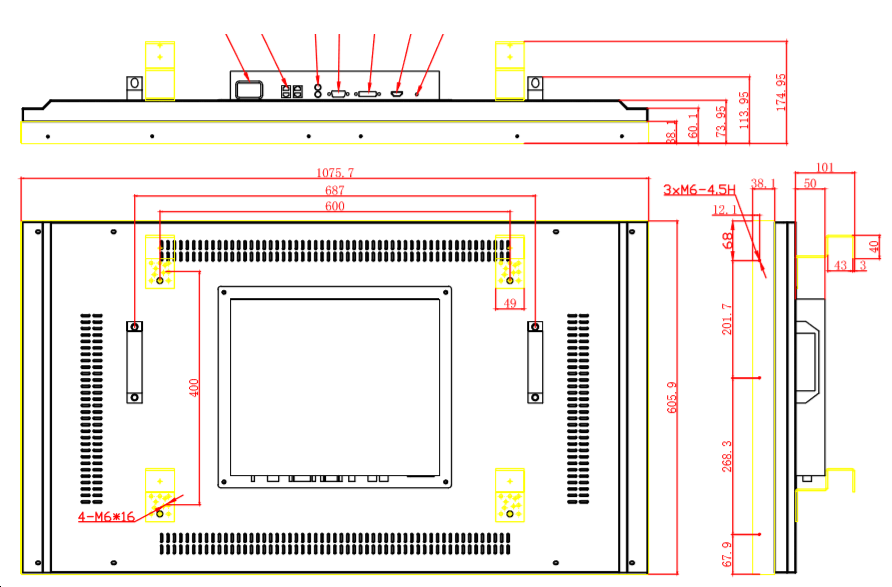 HDMI/DVI/VGA/AV/RS232/電源接(jiē)口 |