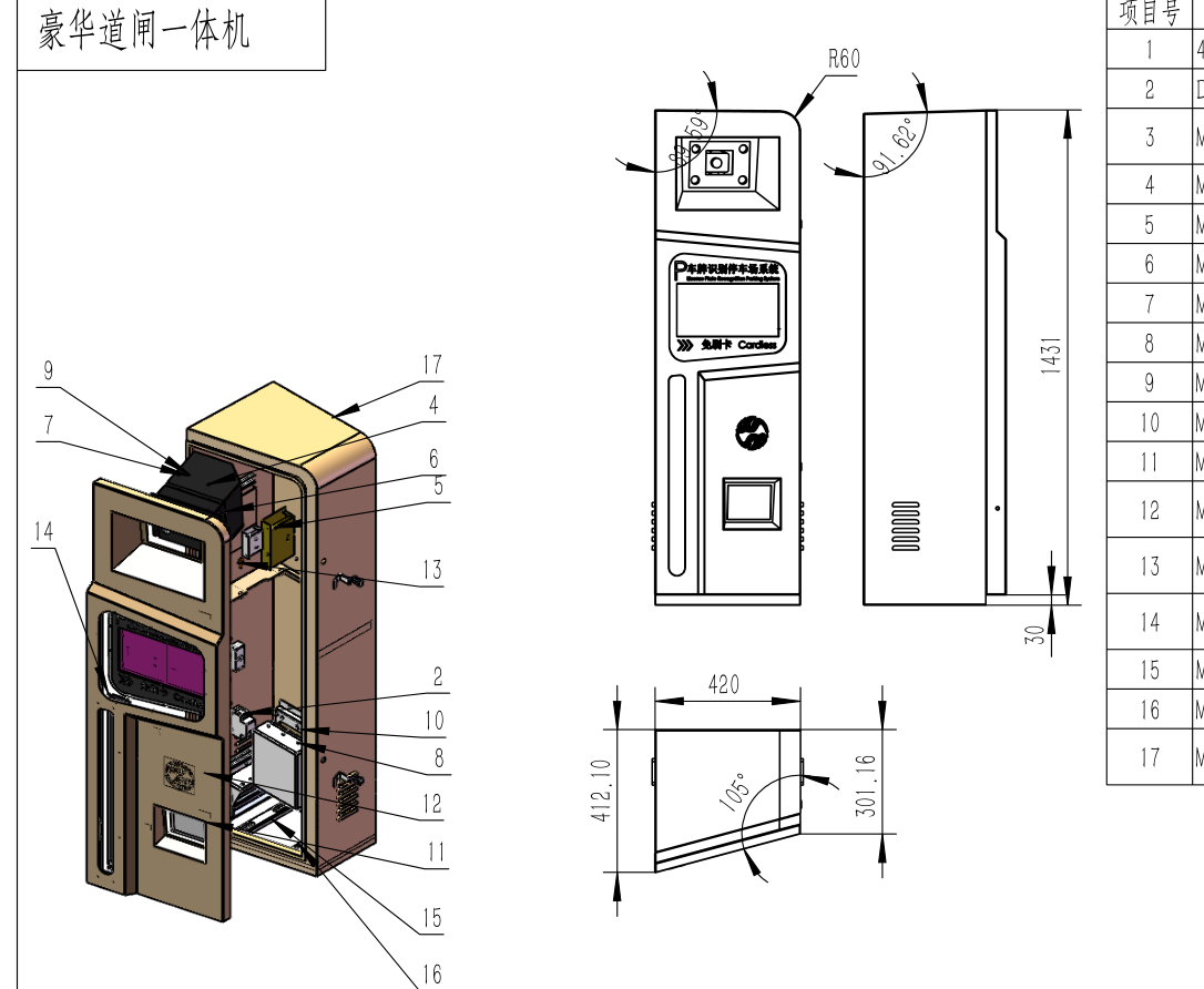 1)、外型(xíng)尺寸機身高、寬、厚:1420mm*430mm*420mm