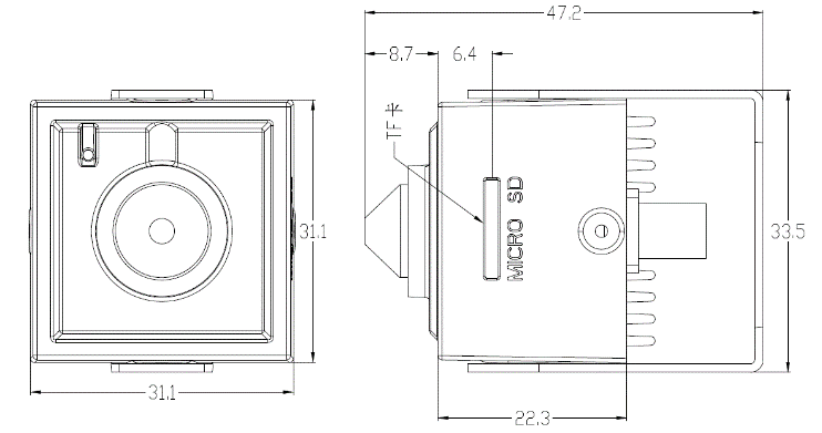1.H.265編碼,200萬像素,最大256G TF CARD,內置mic
